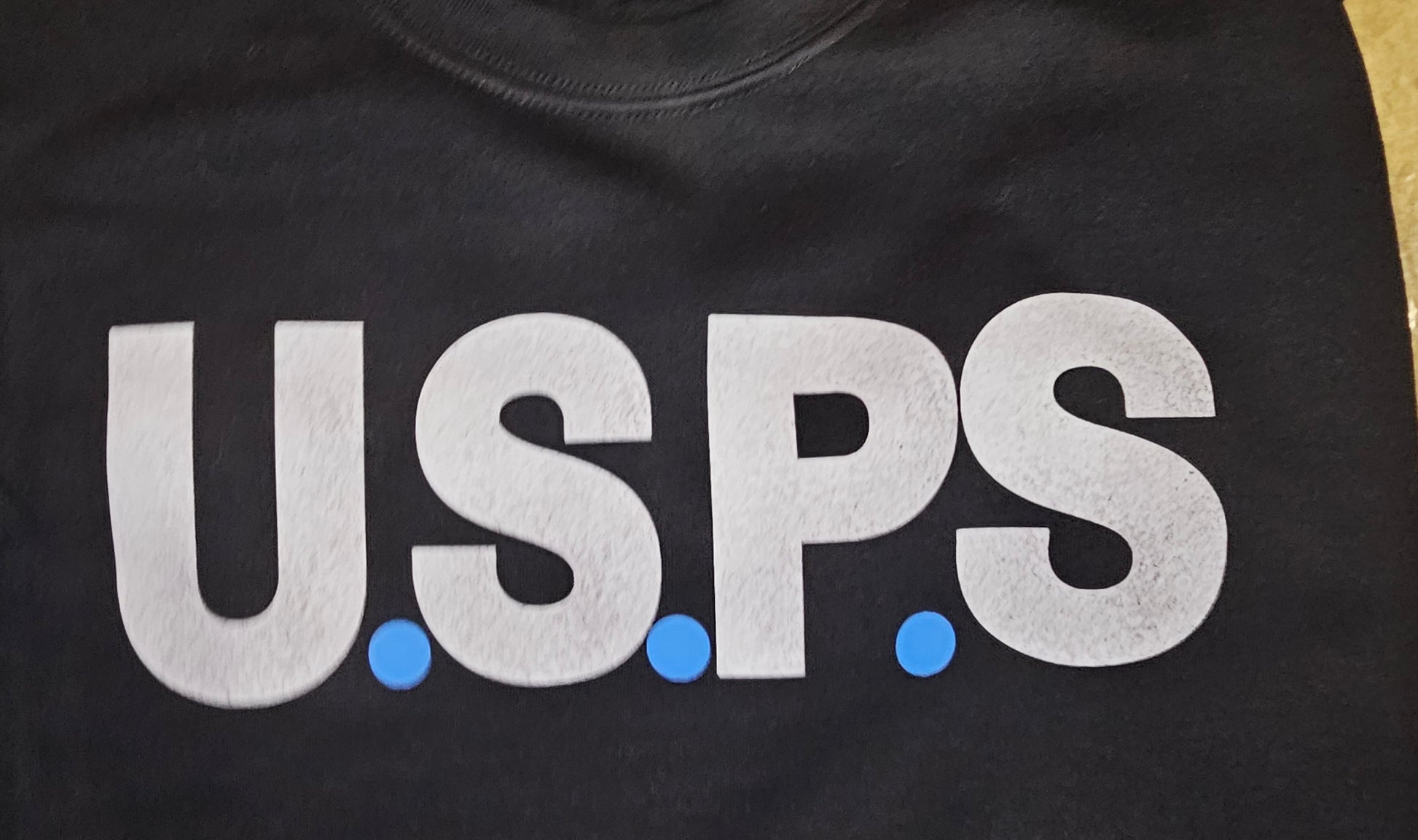 "Get the edgy postal worker look with our Usps grunge look. The black and white design, featuring blue dots, adds a unique touch to your style. Show off your USPS pride with this bold and modern design."